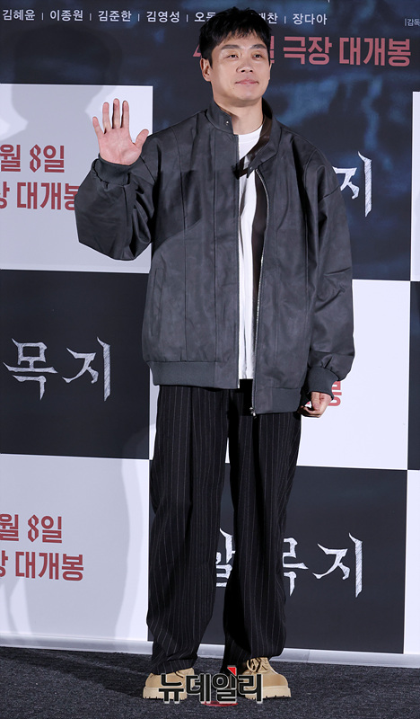 배우 김영성이 4일 오전 서울 용산구 CGV 아이파크몰에서 열린 영화 '살목지' 제작보고회에서 포즈를 취하고 있다.