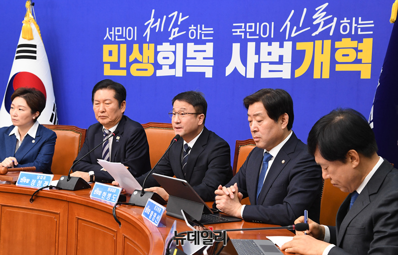 한병도 더불어민주당 원내대표가 4일 오전 국회에서 열린 최고위원회의에서 발언을 하고 있다.