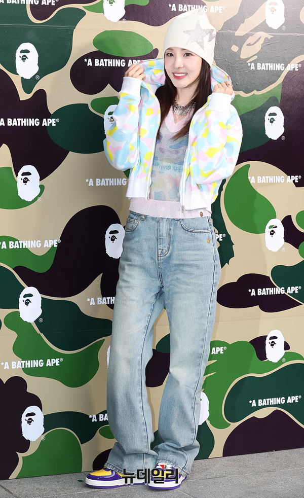 투애니원 산다라박이 4일 오후 서울 강남구 베이프 스토어 도산에서 열린 그랜드 오프닝 행사에서 포즈를 취하고 있다.
