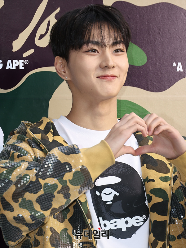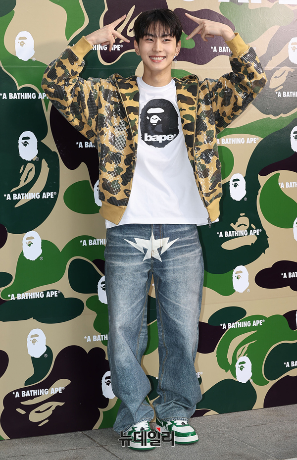 엔하이픈 정원이 4일 오후 서울 강남구 베이프 스토어 도산에서 열린 그랜드 오프닝 행사에서 포즈를 취하고 있다.