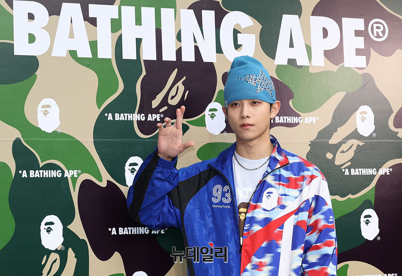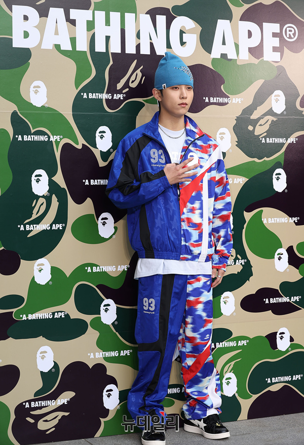 아이돌그룹 롱샷 률이 4일 오후 서울 강남구 베이프 스토어 도산에서 열린 그랜드 오프닝 행사에서 포즈를 취하고 있다.