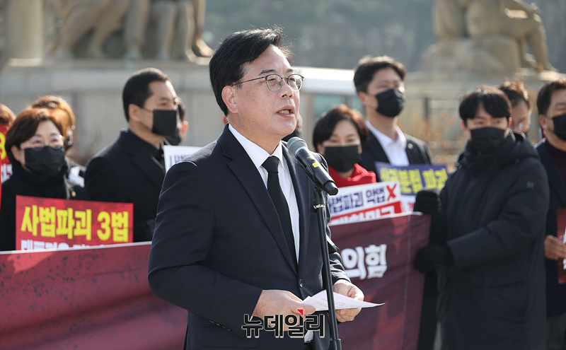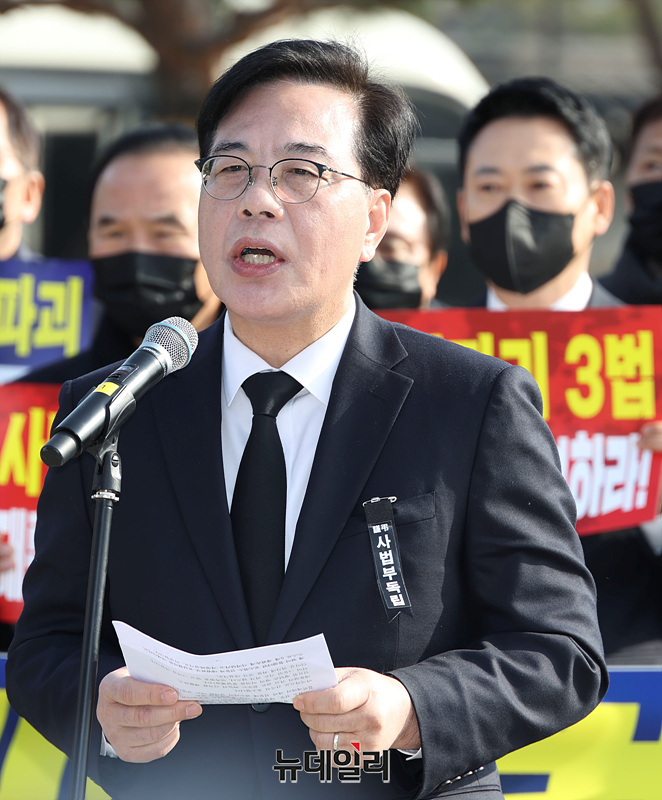 [포토] '사법파괴 3대 악법' 규탄하는 송언석 원내대표
