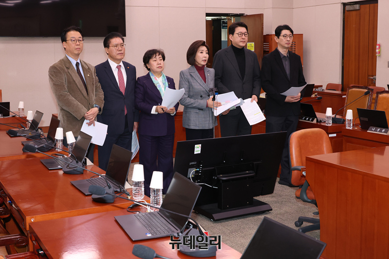 [포토] 긴급현안질의 요구하는 국민의힘 법사위원들