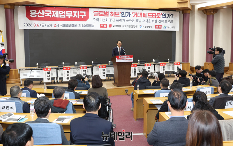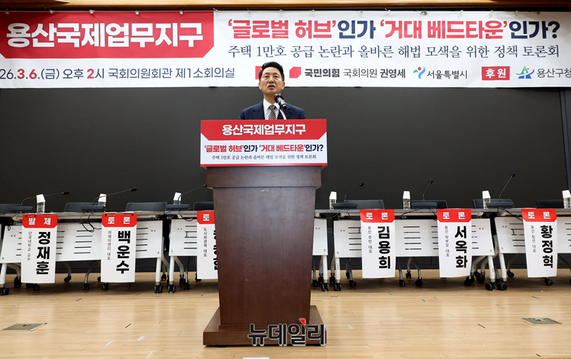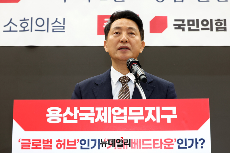 오세훈 서울시장이 6일 오후 국회 의원회관에서 열린 '용산국제업무지구, 주택 1만호 공급 논란과 올바른 해법 모색을 위한 정책 토론회'에서 발언을 하고 있다.