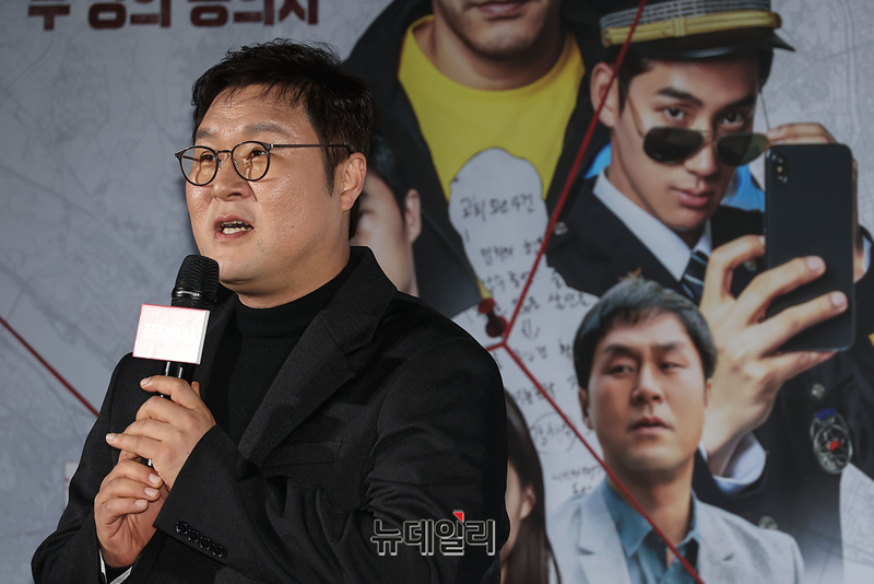 배우 윤경호가 9일 오전 서울 CGV용산아이파크몰에서 열린 영화 '끝장수사(각본 감독 박철환)' 제작보고회에서 인사말을 하고 있다.'끝장수사'는 촌구석으로 좌천된 형사 ‘재혁(배성우)’에게 찾아온 인생 마지막 기회! 두 명의 용의자가 얽힌 살인사건의 진범을 잡기 위해 신입 형사 ‘중호(정가람)’와 서울로 끝장수사를 떠나면서 벌어지는 이야기를 담은 범죄 수사극이다.배우 배성우, 정가람, 이솜, 조한철, 윤경호 등이 출연한다. 4월 2일 극장 개봉.