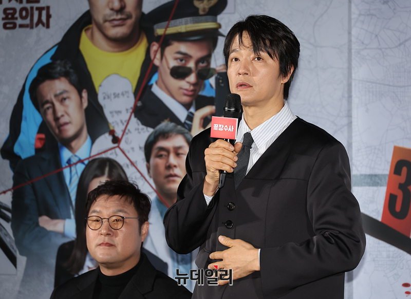 배우 조한철이 9일 오전 서울 CGV용산아이파크몰에서 열린 영화 '끝장수사(각본 감독 박철환)' 제작보고회에서 인사말을 하고 있다.'끝장수사'는 촌구석으로 좌천된 형사 ‘재혁(배성우)’에게 찾아온 인생 마지막 기회! 두 명의 용의자가 얽힌 살인사건의 진범을 잡기 위해 신입 형사 ‘중호(정가람)’와 서울로 끝장수사를 떠나면서 벌어지는 이야기를 담은 범죄 수사극이다.배우 배성우, 정가람, 이솜, 조한철, 윤경호 등이 출연한다. 4월 2일 극장 개봉.
