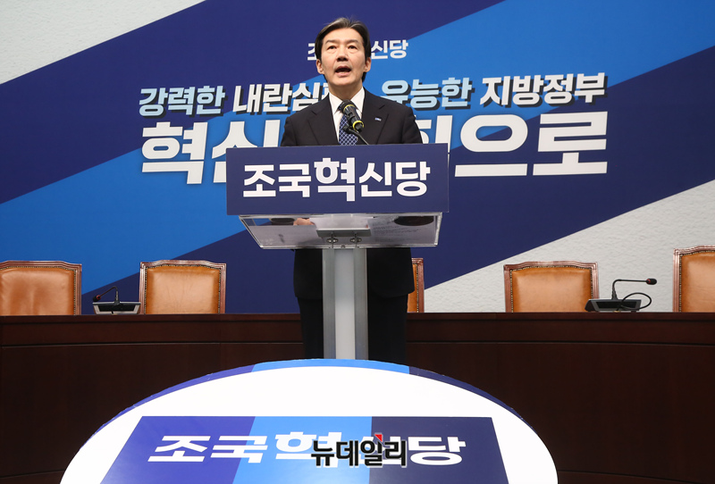 조국 조국혁신당 대표가 9일 오전 국회에서 열린 '조국혁신당 창당 2주년 기자간담회'에서 발언을 하고 있다.