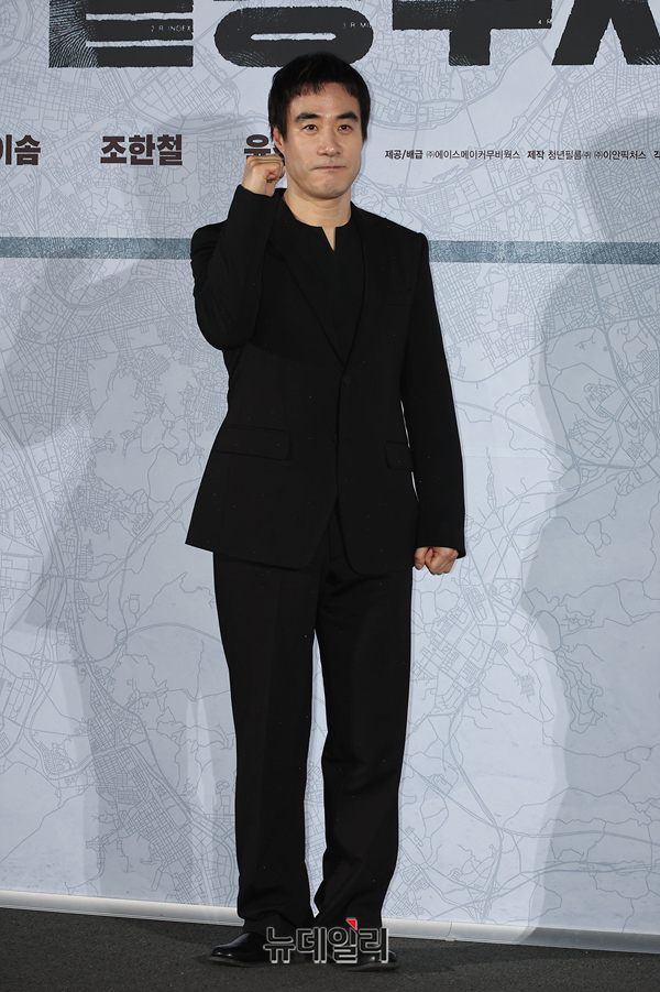 배성우가 9일 오전 서울 CGV용산아이파크몰에서 열린 영화 '끝장수사(각본 감독 박철환)' 제작보고회에서 포즈를 취하고 있다.'끝장수사'는 촌구석으로 좌천된 형사 ‘재혁(배성우)’에게 찾아온 인생 마지막 기회! 두 명의 용의자가 얽힌 살인사건의 진범을 잡기 위해 신입 형사 ‘중호(정가람)’와 서울로 끝장수사를 떠나면서 벌어지는 이야기를 담은 범죄 수사극이다.배우 배성우, 정가람, 이솜, 조한철, 윤경호 등이 출연한다. 4월 2일 극장 개봉.