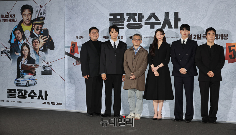 주연 배우들이 9일 오전 서울 CGV용산아이파크몰에서 열린 영화 '끝장수사(각본 감독 박철환)' 제작보고회에서 포즈를 취하고 있다.'끝장수사'는 촌구석으로 좌천된 형사 ‘재혁(배성우)’에게 찾아온 인생 마지막 기회! 두 명의 용의자가 얽힌 살인사건의 진범을 잡기 위해 신입 형사 ‘중호(정가람)’와 서울로 끝장수사를 떠나면서 벌어지는 이야기를 담은 범죄 수사극이다.배우 배성우, 정가람, 이솜, 조한철, 윤경호 등이 출연한다. 4월 2일 극장 개봉.
