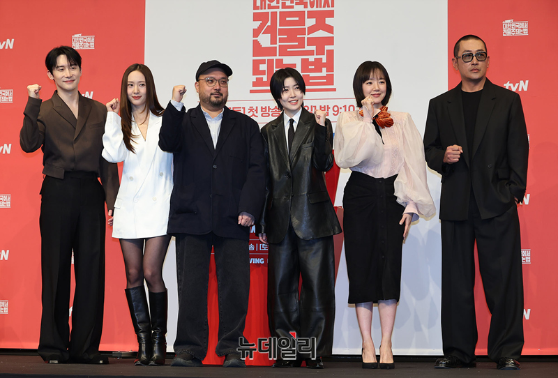 임필성 감독이 9일 오후 서울 구로구 더링크호텔 서울에서 열린 tvN 드라마 '대한민국에서 건물주 되는 법(연출 임필성, 극본 오한기)' 제작보고회에서 포즈를 취하고 있다.'대한민국에서 건물주 되는 법'은 건물주가 되고 건물을 지키기 위해 처절하게 발악하는 흙수저 가장 기수종의 이야기로, 엄청난 빚더미를 떠안으며 건물주가 된 기수종 자신과 가족의 미래인 빌딩을 빼앗길 위해에 놓이며 발버둥 치는 이야기를 담았다.배우 하정우, 이수정, 김준한, 정수정, 심은경 등이 출연한다. 12부작으로 3월 14일 토요일 첫 방송.
