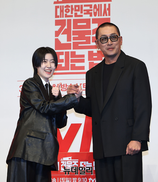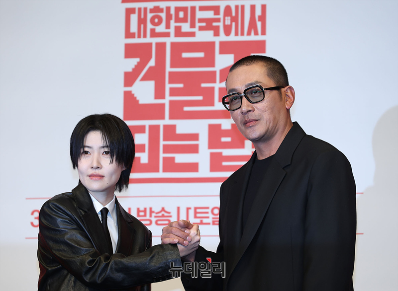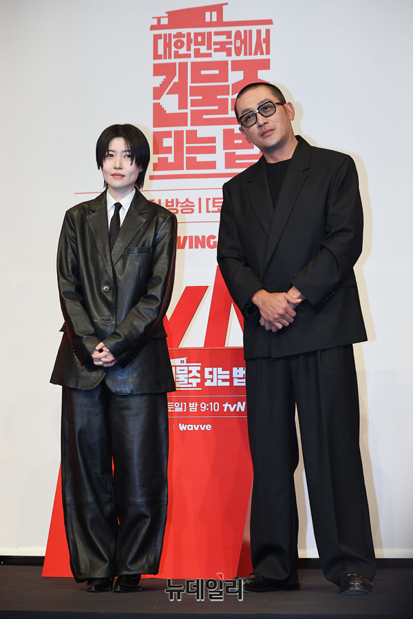 배우 하정우, 심은경이 9일 오후 서울 구로구 더링크호텔 서울에서 열린 tvN 드라마 '대한민국에서 건물주 되는 법(연출 임필성, 극본 오한기)' 제작보고회에서 포즈를 취하고 있다.'대한민국에서 건물주 되는 법'은 건물주가 되고 건물을 지키기 위해 처절하게 발악하는 흙수저 가장 기수종의 이야기로, 엄청난 빚더미를 떠안으며 건물주가 된 기수종 자신과 가족의 미래인 빌딩을 빼앗길 위해에 놓이며 발버둥 치는 이야기를 담았다.배우 하정우, 이수정, 김준한, 정수정, 심은경 등이 출연한다. 12부작으로 3월 14일 토요일 첫 방송.