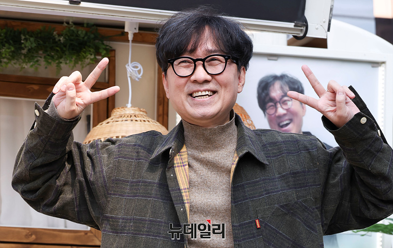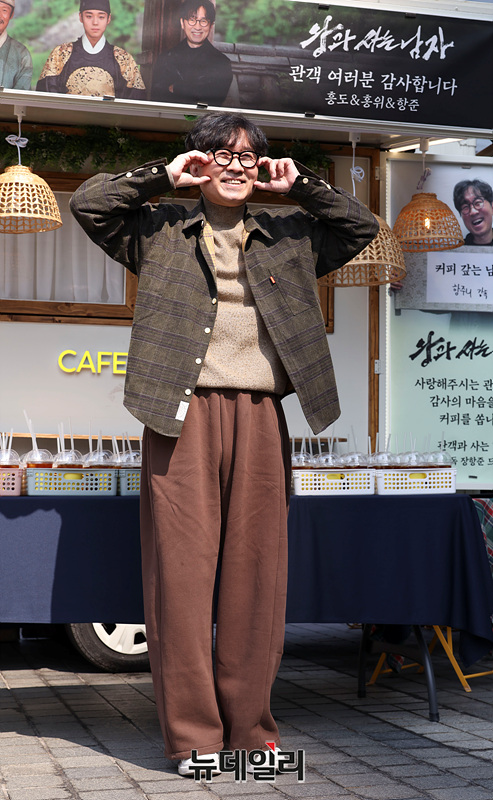 영화 '왕과 사는 남자'가 1200만 관객을 돌파한 가운데 연출을 맡은 장항준 감독이 12일 오후 서울 중구 한국프레스센터 앞에서 열린 흥행 감사 커피차 이벤트에서 포즈를 취하고 있다.