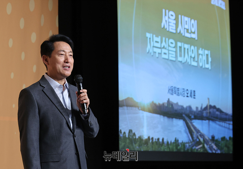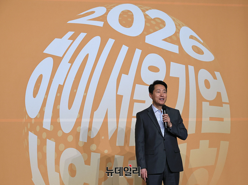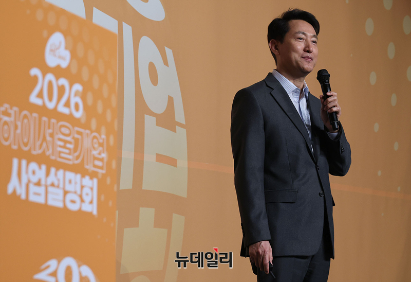 오세훈 서울시장이 12일 오후 서울 중구 더플라자호텔 서울에서 열린 2026 하이서울기업 사업 설명회에서 서울시정 특강을 하고 있다. 사업설명회는 386개사 553명이 참석해 비즈니스 협업피칭, 유관기관/SBA사업, 서울시정 특강 등으로 진행됐다.