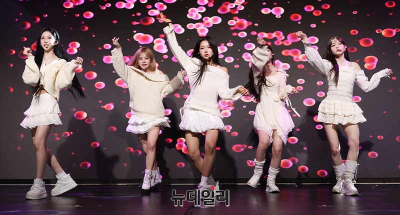걸그룹 에스투잇(S2iT) 하루, 연수, 세아, 효빈, 승비가 12일 오후 서울 마포구 동양북스 공연장에서 열린 데뷔 기념 미디어 쇼케이스에서 무대를 선보이고 있다.