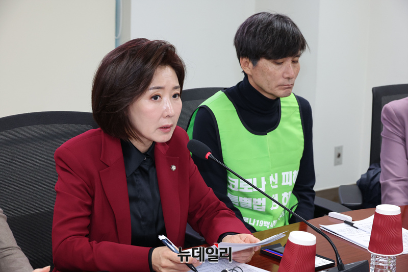 [포토] 코로나 백신 피해자 간담회서 발언하는 나경원 의원