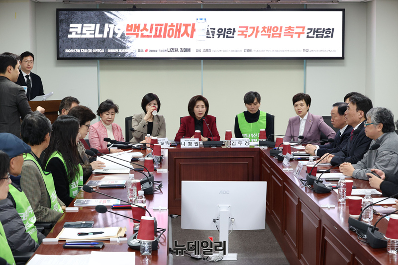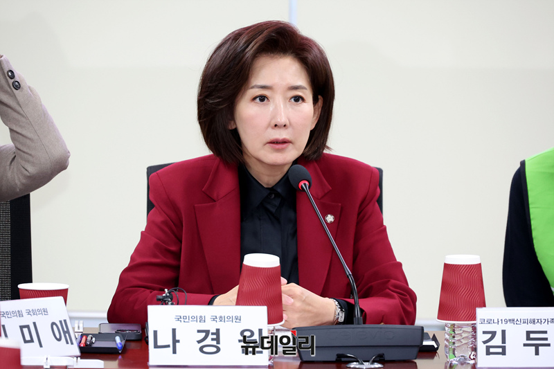 나경원 국민의힘 의원이 13일 국회 의원회관에서 열린 '코로나19 백신 피해자를 위한 국가 책임 촉구 간담회'에서 모두발언을 하고 있다.