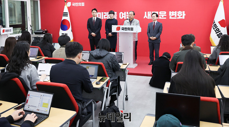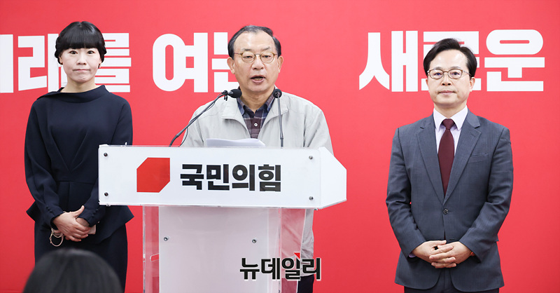 이정현 국민의힘 공천관리위원장이 16일 오전 서울 여의도 국민의힘 중앙당사에서 충북지사 공천 심사 결과 발표를 하고 있다.