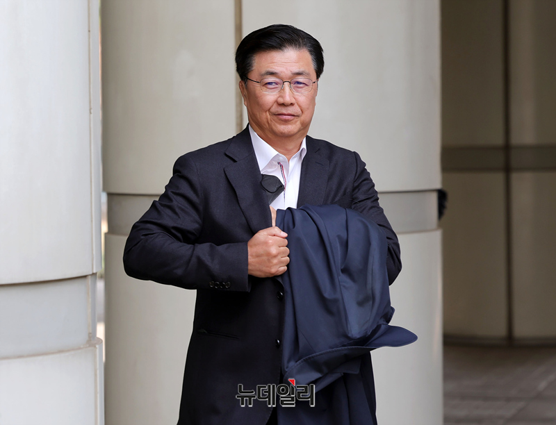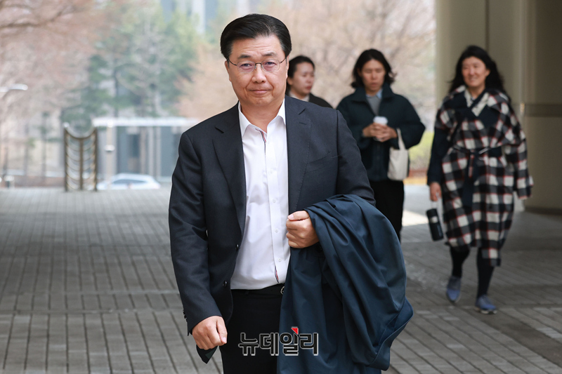 홍장원 전 국가정보원 1차장이 16일 오후 서울 서초구 서울중앙지방법원에서 열린 12·3 비상계엄 관련 직무유기 혐의를 받는 조태용 전 국가정보원장의 4차 공판에 증인으로 출석하고 있다.