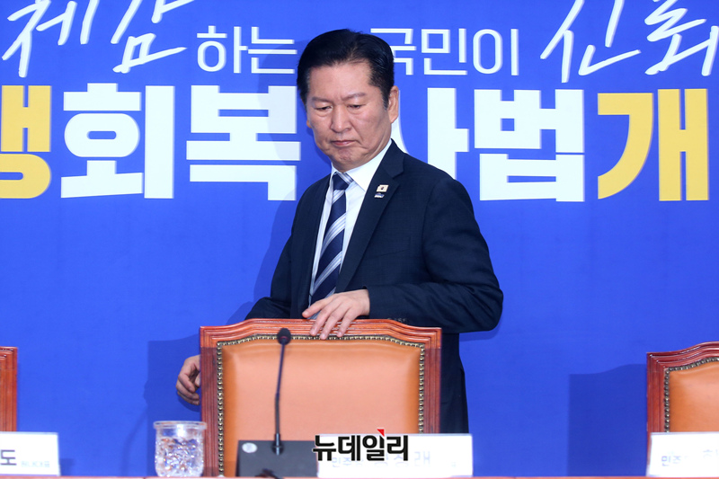 [포토] 긴급 기자회견 입장하는 정청래 민주당 대표