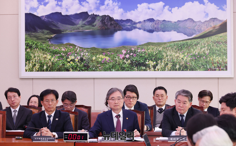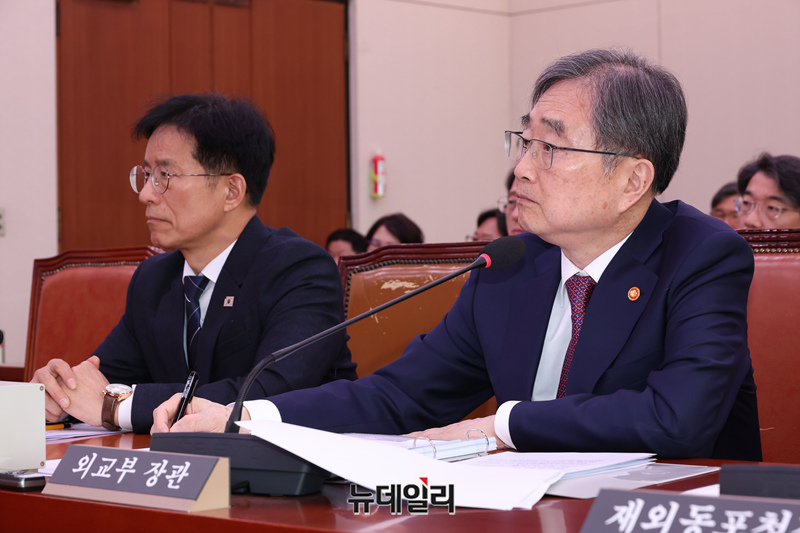 조현 외교부 장관이 17일 오전 국회에서 열린 외교통일위원회 전체회의에서 의원들의 질문에 답하고 있다.
