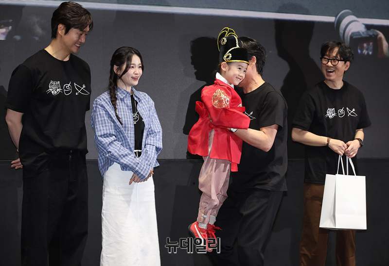 2026년 최고의 흥행작에 등극한 영화 '왕과 사는 남자'에서 단종역을 맡은 배우 박지훈이 17일 오후 서울 강남구 메가박스 코엑스에서 열린 흥행 감사 무대인사에서 곤룡포를 입은 어린이 팬과 기념촬영을 하고 있다.왕과사는남자는 3월 16일 현재 기준 누적 관람객 약 1,360만 1,731명을 기록했다. 역내 네 번째 사극 1,000만 영화로 등극하며 흥행 가도를 이어가고 있다.영화는 1457년 청령포, 마을의 부흥을 위해 유배지를 자처한 촌장과 왕위에서 쫓겨나 유배된 어린 선왕의 이야기를 그린다.