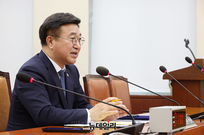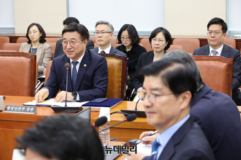 윤호중 행정안전부 장관이 18일 오전 국회에서 열린 행정안전위원회 전체회의에서 모두발언을 하고 있다.
