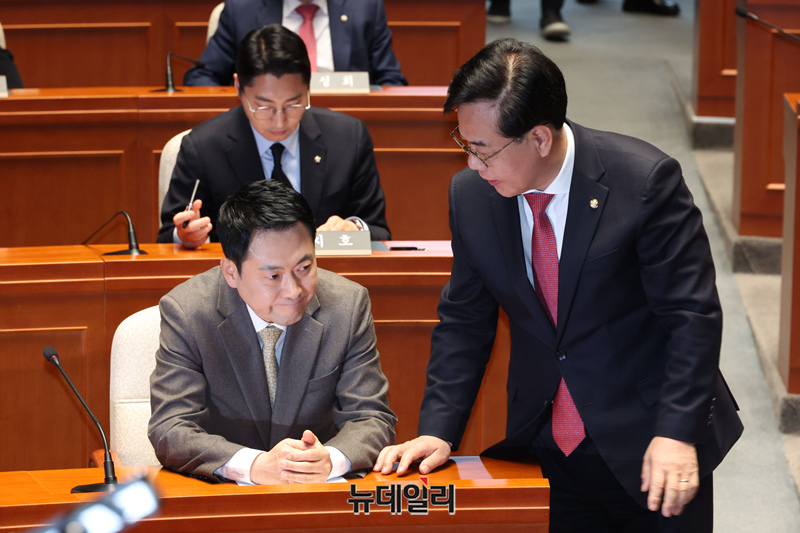 [포토] 의총서 대화 나누는 장동혁 대표와 송언석 원내대표