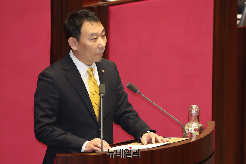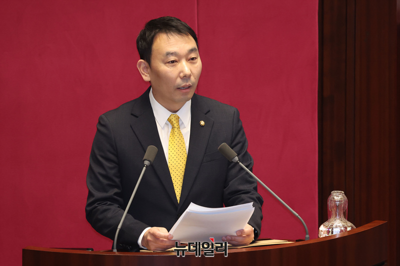 김용민 국회 법제사법위원회 더불어민주당 간사가 19일 오후 국회에서 열린 본회의에서 공소청법을 제안설명을 하고 있다.