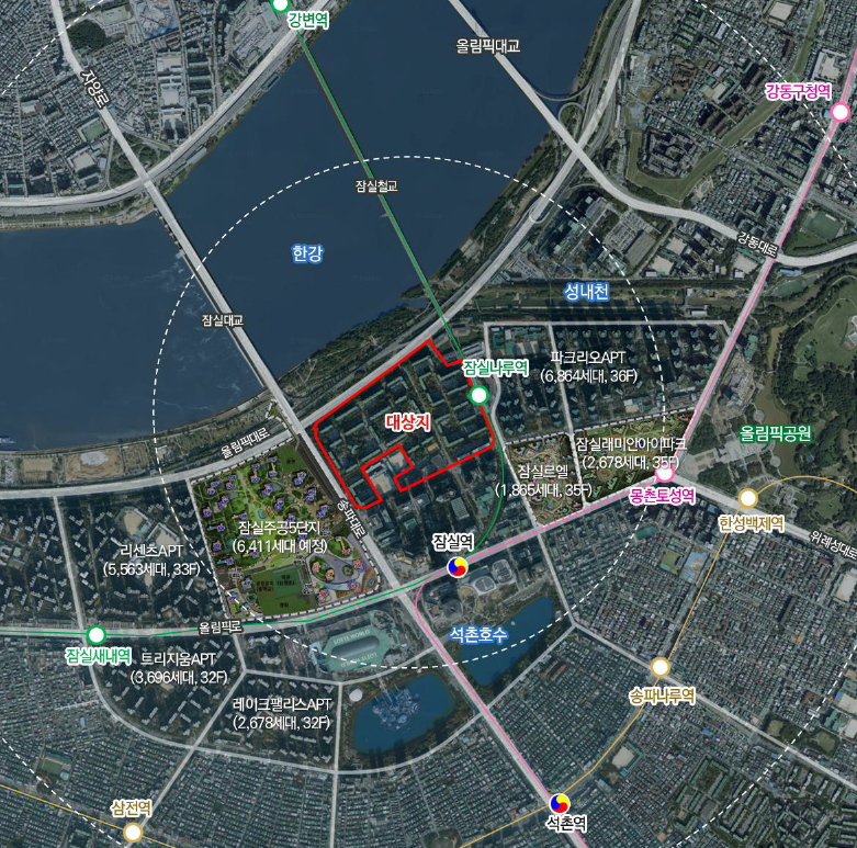 ◆ 잠실 재건축의 상징 장미, 내부 갈등 정리하고 속도전장미아파트는 잠실 재건축 시장에서도 상징성이 큰 단지다. 1·2차는 1979년, 3차는 1984년 준공돼 이미 준공 40년을 훌쩍 넘겼다.입지는 서울에서도 손꼽힌다. 2호선 잠실나루역과 가깝고 한강 수변공원, 올림픽공원, 잠실 광역중심을 두루 누릴 수 있다. 단지 안에 학교를 품고 있고 생활편의시설 접근성도 뛰어나 "살 곳은 좋은데 집은 너무 낡았다"는 평가를 오랫동안 받아왔다. 실제로 서울시와 언론 보도에서도 주차난과 노후 배관에 따른 녹물 문제가 대표적 불편으로 꼽혔다.장미아파트는 지난해 8월 서울시 신속통합기획이 확정되며 최고 49층, 4800가구 안팎 규모 재건축 밑그림을 먼저 받았다. 이후 조합 내부에서는 잠실 한강변 랜드마크 경쟁을 의식해 69층 초고층 카드도 검토했지만 조합원들은 속도와 사업성을 택했다. 공사비와 금융비용, 추가 분담금 부담이 커질 수 있다는 우려 속에 결국 49층 준초고층안이 우세했고 이번 정비계획 수정가결로 공급 규모는 5105가구까지 커졌다.올해 들어선 조합 내부 정비와 상가 갈등 정리도 사업 진전에 힘을 보탰다. 지난 1월 상가와의 법적 분쟁이 사실상 마무리되면서 재건축 추진 불확실성이 한층 줄었고 이달 초에는 새 조합장 선출까지 이뤄지며 사업 속도전에 대한 기대도 커진 상태다. 업계에선 이르면 올해 말 시공자 선정 총회 가능성도 거론된다.
