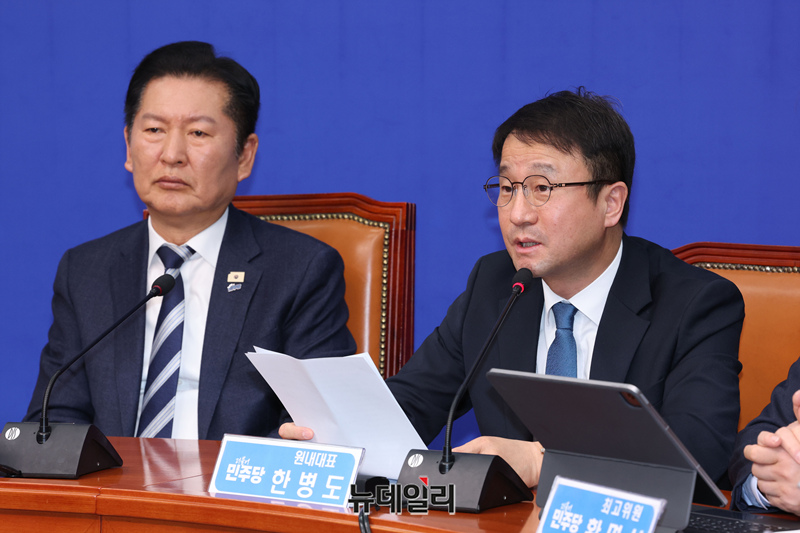 한병도 더불어민주당 원내대표가 20일 오전 국회에서 열린 최고위원회의에서 모두발언을 하고 있다.