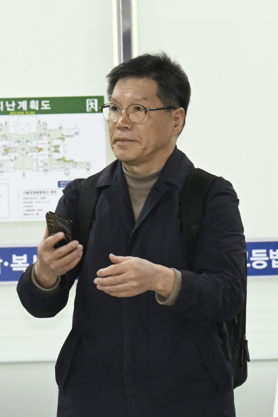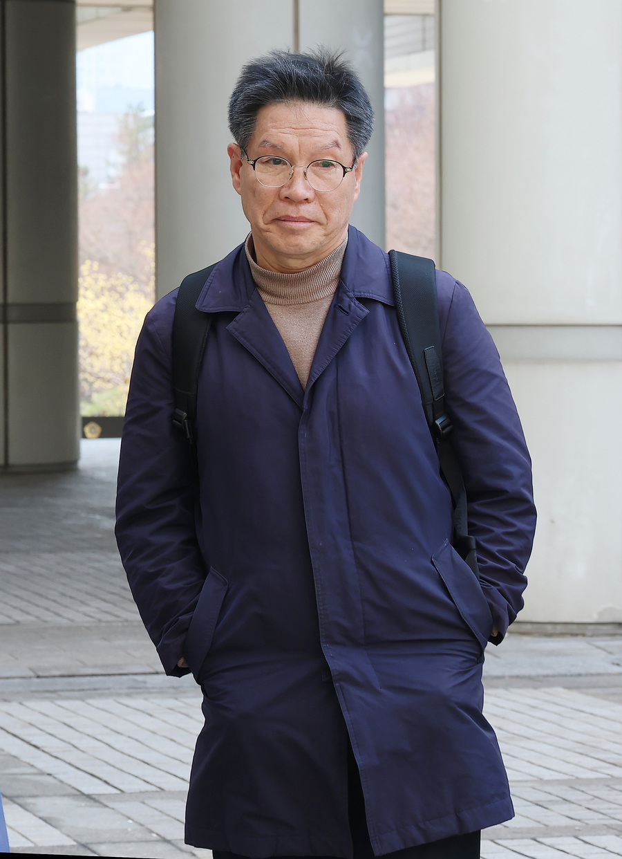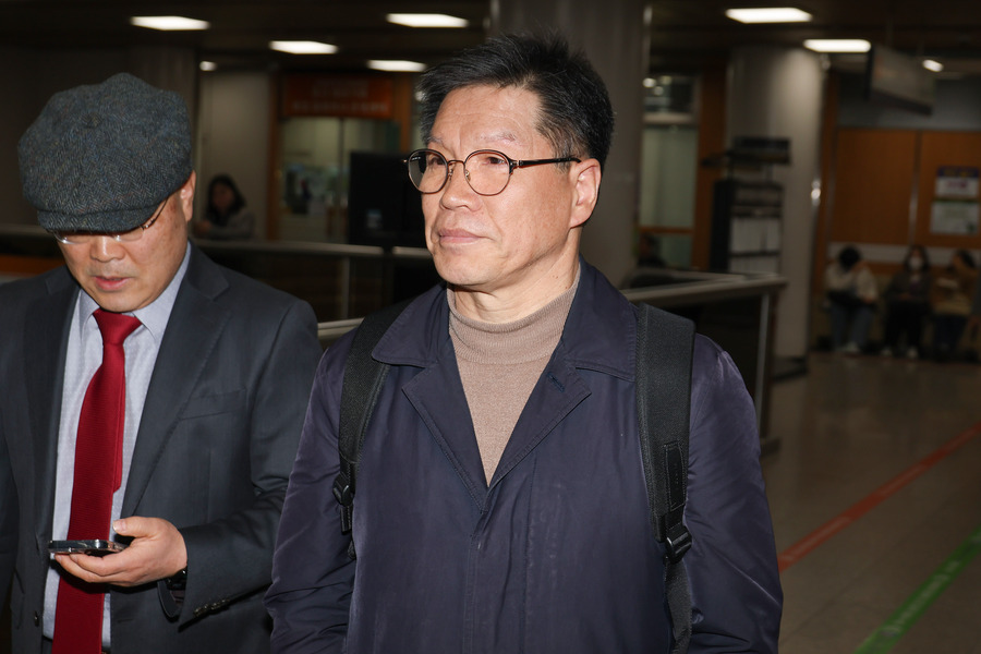 김병헌 위안부법폐지국민행동 대표가 20일 오후 서울 서초구 서울중앙지방법원에서 열린 일본군 위안부 피해자 모욕사건과 관련해 영장실질심사에 출석하고 있다.