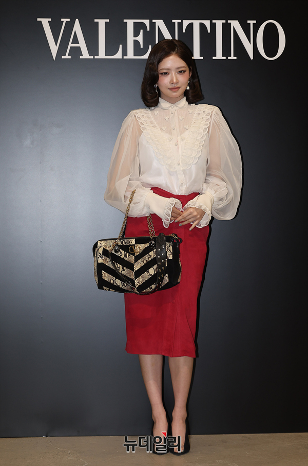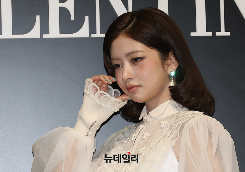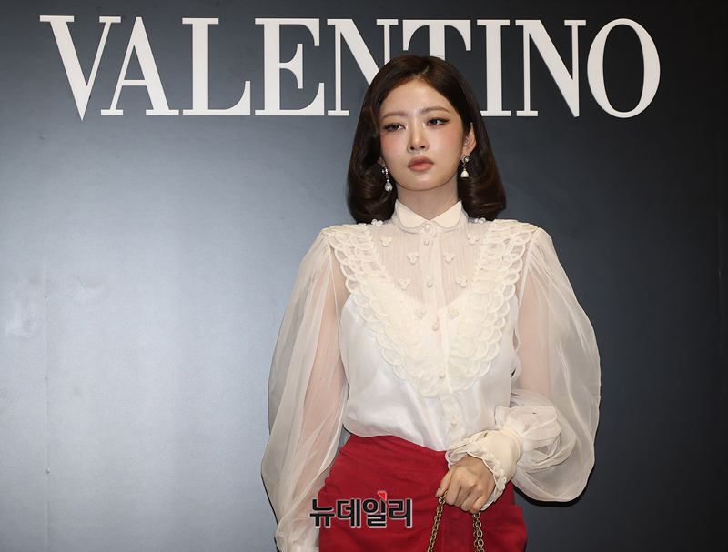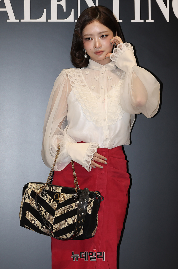 브랜드 앰버서더 아이브 레이가 20일 오후 서울 성동구 성수동 레이어스튜디오41에서 열린 이탈리아 브랜드 발렌티노 2026 봄여름 파이어플라이즈 컬렉션 프레젠테이션에 참석해 포즈를 취하고 있다.