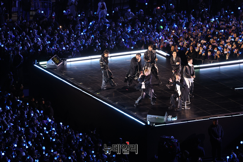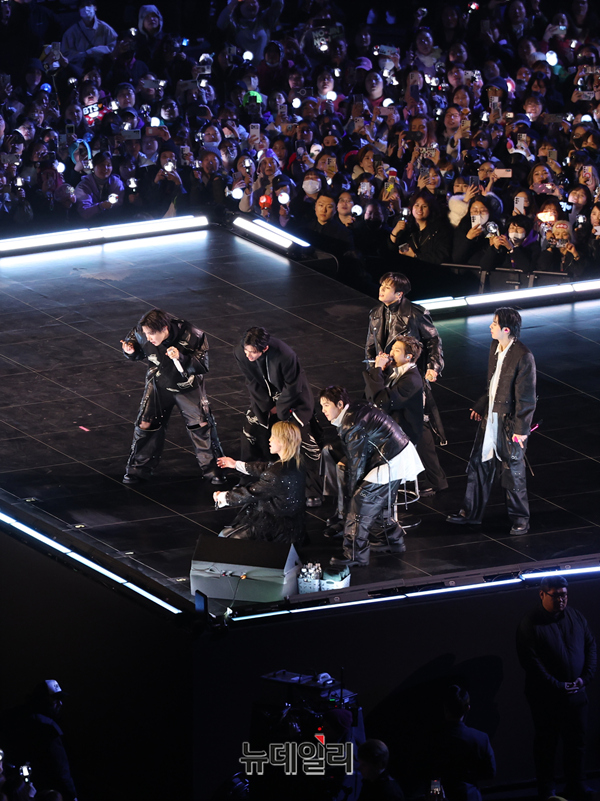 방탄소년단(BTS)이 21일 오후 서울 광화문 광장에서 정규 5집 '아리랑(ARIRANG)' 앨범 발매를 기념해 컴백 무대를 선보이고 있다. 방탄소년단은 오후 8시부터 약 1시간에 걸쳐 신곡과 히트곡 무대를 선사한다. (사진=공동취재단)