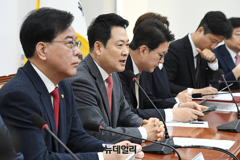장동혁 국민의힘 대표가 23일 국회에서 열린 최고위원회의에서 발언하고 있다.