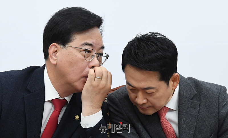 [포토] 대화 나누는 장동혁 국민의힘 대표와 송언석 원내대표