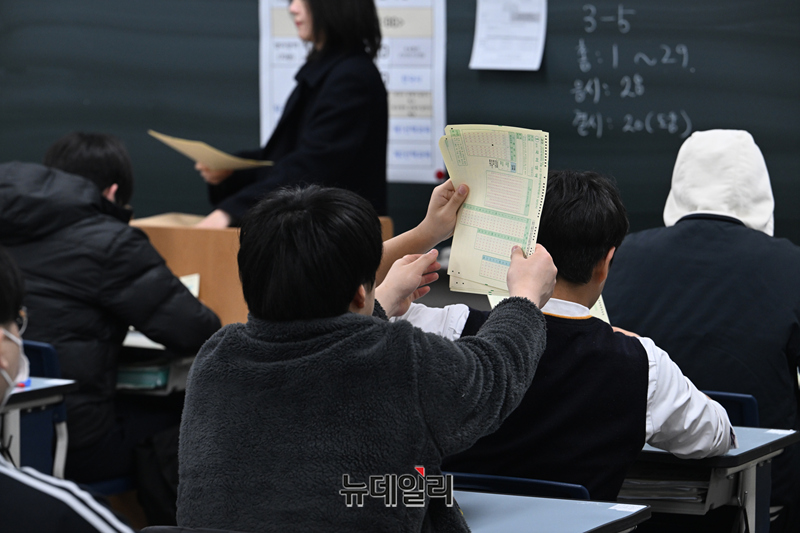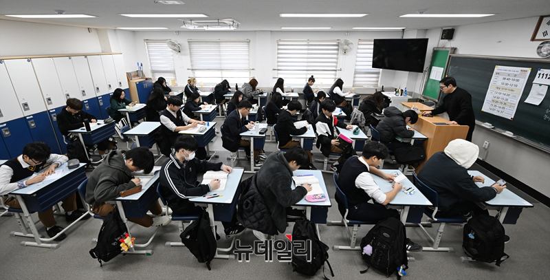 2026년 3월 전국연합학력평가가 실시된 24일 오전 서울 금천구 금천고등학교에서 학생들이 시험을 준비하고 있다. 이번 3월 학력평가는 전국 17개 시도의 1,948개교 고등학교 1~3학년 학생 약 122만 명을 대상으로 시행된다. (사진=공동취재단)