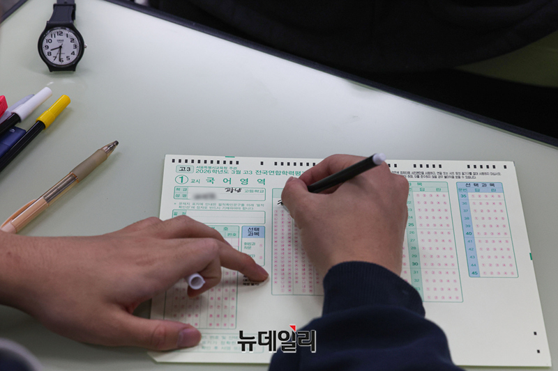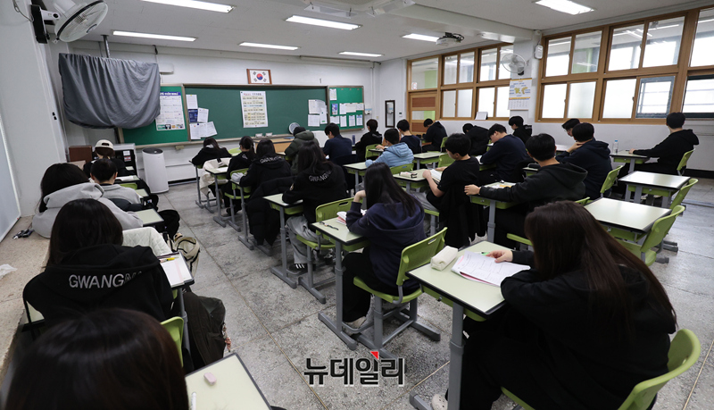 2026년 3월 전국연합학력평가일인 24일 오전 서울 광진구 광남고등학교에서 수험생들이 시험 준비를 하고 있다. (사진=공동취재단)