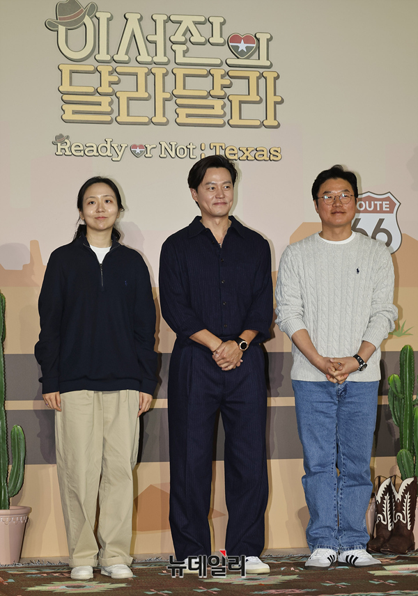 배우 이서진, 나영석, 김예슬 PD가 24일 오후 서울 CGV 용산아이파크몰에서 열린 넷플릭스 예능 '이서진의 달라달라(연출 나영석 김예슬)' 제작보고회에서 포즈를 취하고 있다.'이서진의 달라달라'는 나영석 사단과 넷플릭스의 두번째 동행 작품으로 계획도 없고 대본도 없는 미국 방랑기 예능이다.텍사스를 제2의 고향으로 여기는 ‘텍사스 덕후’ 이서진과 그를 올망졸망 따라나선 나영석 일행의 좌충우돌 여행을 그린다. 3월 24일 오후 5시 첫 공개.