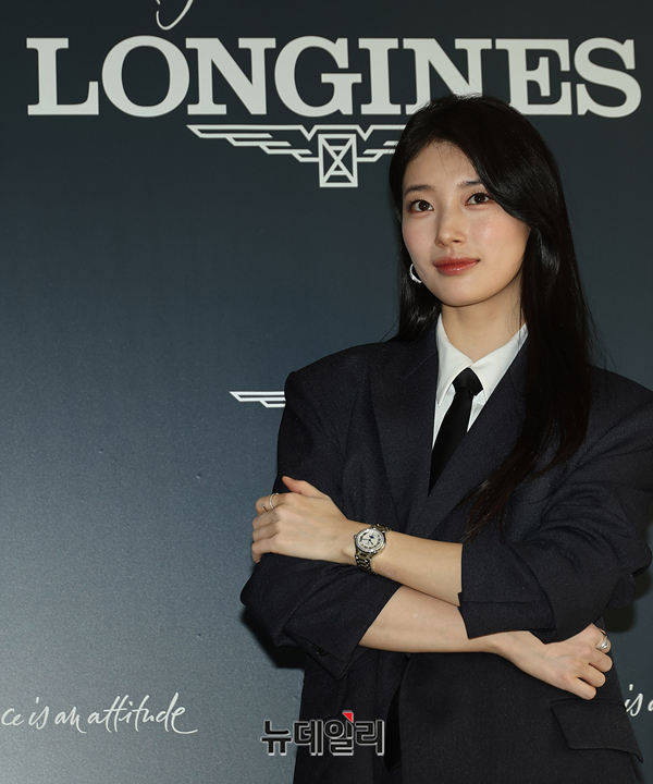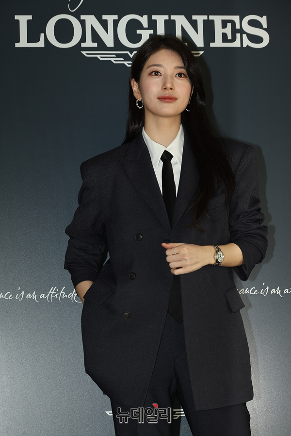 브랜드 앰버서더 수지가 25일 오후 서울 강남구 웨스틴 파르나스에서 열린 론진 타임피스 컬렉션 공개행사에서 포즈를 취하고 있다. 론진은 이번 프레젠테이션을 통해 신제품을 국내에서 처음 공개했다. 해당 컬렉션은 국내 시장에 순차적으로 공개될 예정이다.