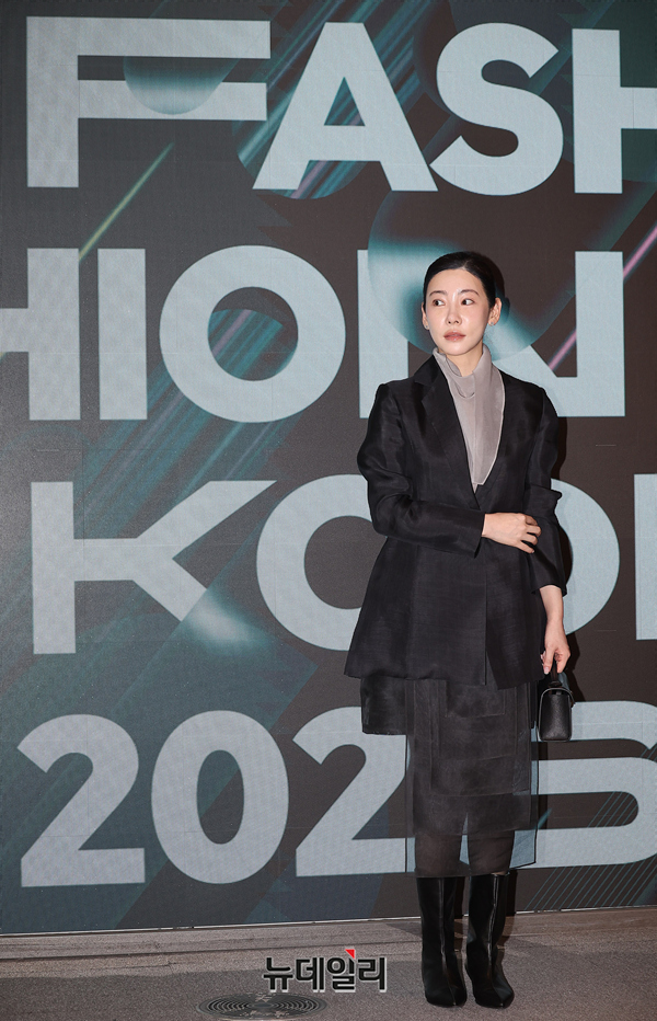 인플루언서 윤이나가 25일 오전 서울 중구 동대문디자인플라자에서 열린 패션코드 2026 FW에서 포즈를 취하고 있다.