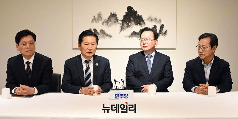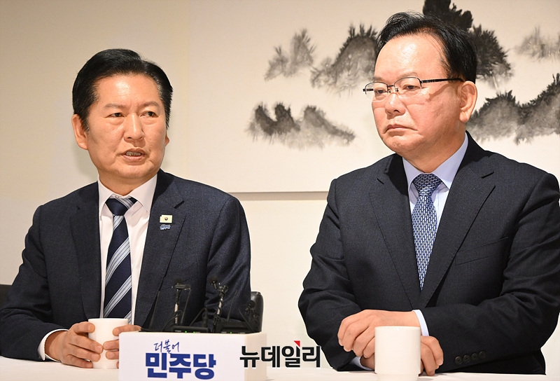 정청래 더불어민주당 대표와 김부겸 전 국무총리가 26일 오전 서울 중구 달개비에서 회동하고 있다. (사진=국회사진기자단)