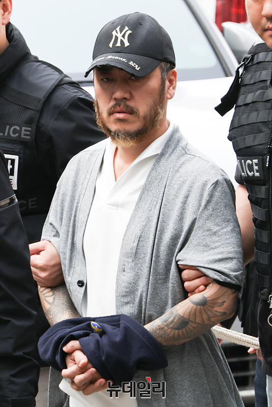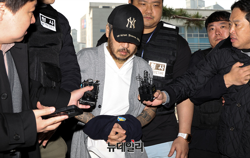 필리핀에서 송환된 '국제 마약왕' 박왕열이 27일 오전 경기 의정부시 의정부지방법원에서 열린 구속 전 피의자심문(영장실질심사)에 출석하고 있다. (경기 의정부=서성진 기자)
