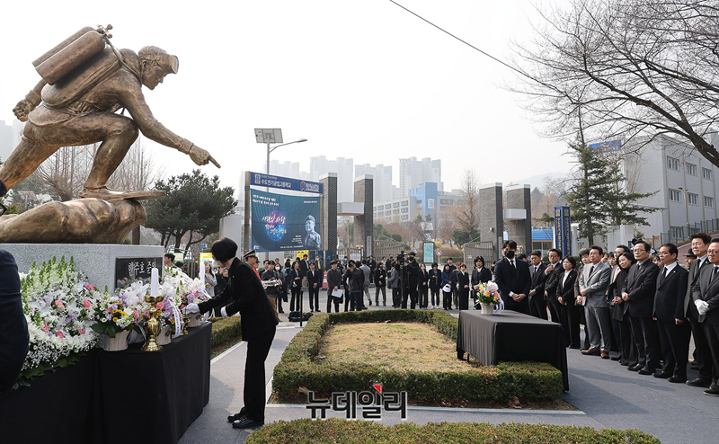 제16주기 고 한주호 준위 추모식이 27일 오전 서울 강남구 수도공고에서 엄수되고 있다. 추모식 직후 제11회 서해수호의날 기념식이 이어졌다.