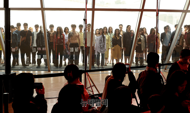 디오비비(DOBB)가 패션코드2026 마지막 날인 27일 오전 서울 중구 동대문디자인플라자에서 열린 패션코드 2026 FW에서 런웨이 피날레를 선보이고 있다.