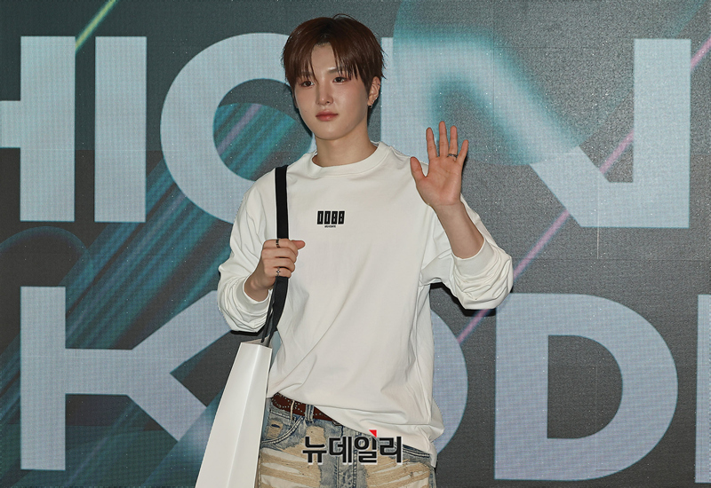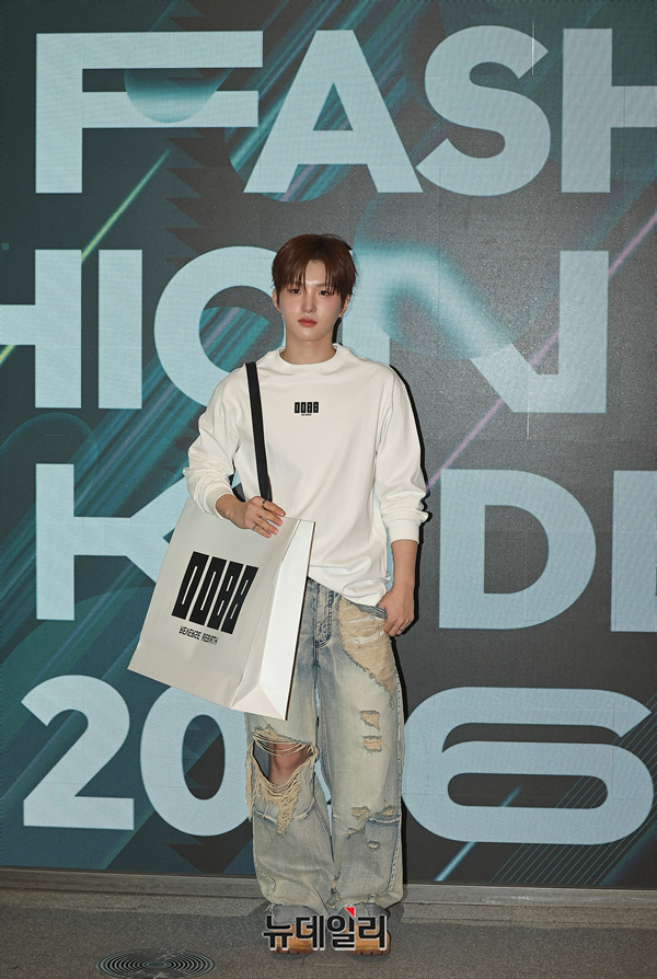인플루언서 문현빈이 27일 오전 서울 중구 DDP에서 열린 패션코드 2026 FW에서 런웨이 관람전 포즈를 취하고 있다.