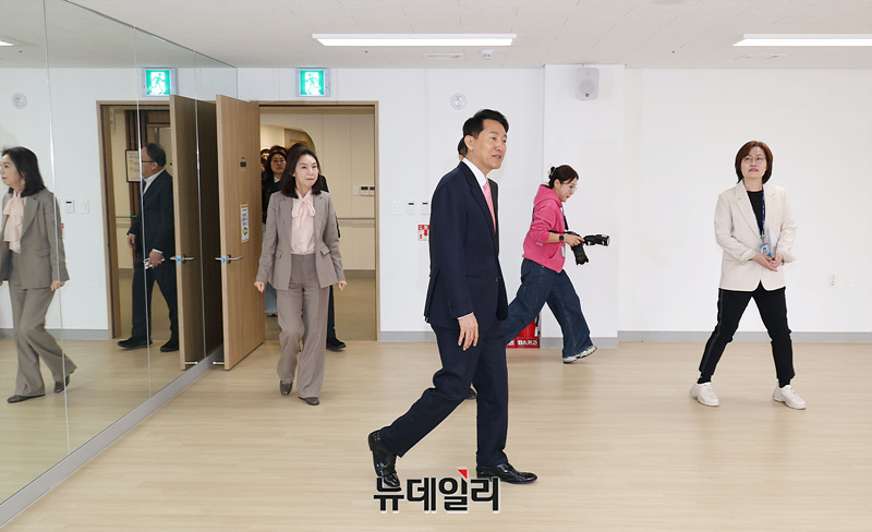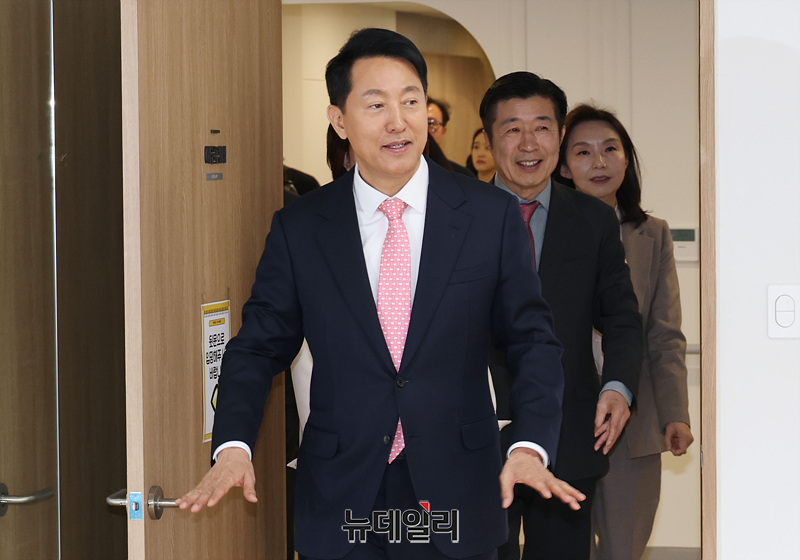 오세훈 서울시장이 30일 오전 서울 서초구 시니어센터에서 열린 '어르신 활력충전 프로젝트 현장설명회'를 마치고 내부를 둘러보고 있다.