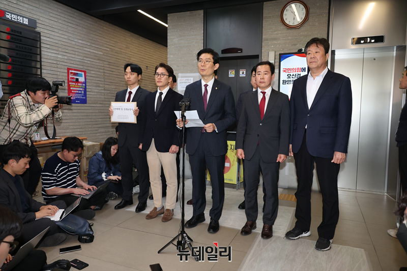 조정훈 국민의힘 의원이 31일 오전 서울 여의도 국민의힘 중앙당사에서 공천헌금 의혹 등 신상 관련 기자회견을 하고 있다.