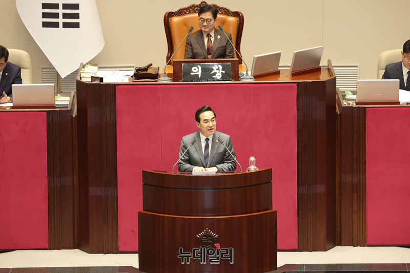 박홍근 기획예산처 장관이 31일 오후 국회에서 열린 본회의에서 신임 국무위원 인사를 하고 있다.