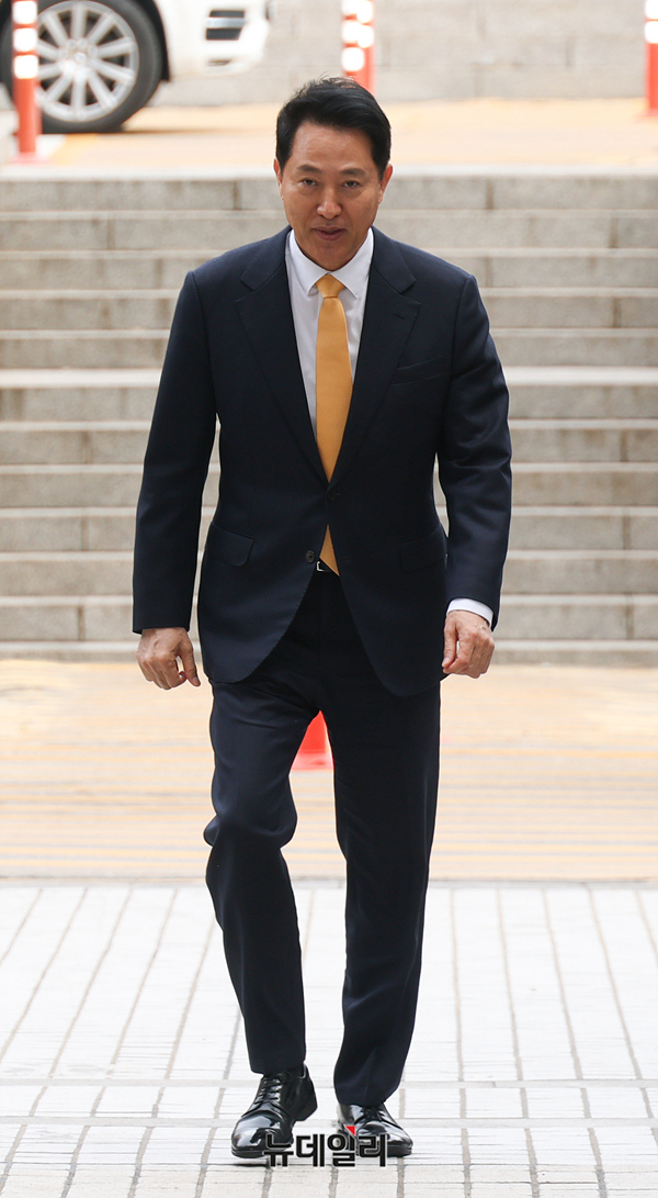 [포토] 여론조사 대납 의혹사건 출석하는 오세훈 서울시장