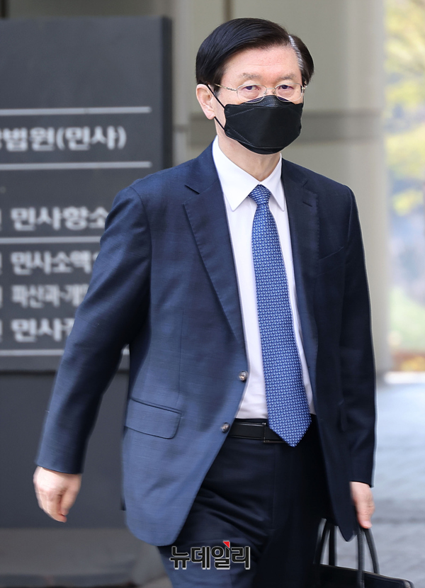 지난해 1월 공수처가 윤석열 전 대통령 체포를 시도할 당시 체포를 방해한 혐의를 받고 있는 박종준 전 경호처장이 2일 오전 서울 서초구 서울중앙지법에서 열린 공판에 출석하고 있다.